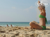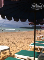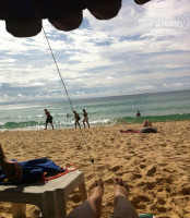 Далее, что касается удаленности отеля от моря. Да, он действительно далековато находиться. Молодым людям подойдет 100%, но вот людям постарше и с маленькими детьми, наверное, стоит обратить внимание на другие отели. 15 минут прогулочным шагом вдоль магазинов, сувенирных лавок, кафешек ну и, конечно же, массажных салонов))) Есть 2 пути от отеля на море: свернуть налево и далее перейти дорогу через пару метров по указателю Kata beach или же свернуть направо и....нафиг надо! Не ходите по дороге направо от отеля. Оживленная трасса в горку-с горки-в горку-с горки без тротуаров... Дорога налево расходится на Kata beach (еще раз налево) и на Karon beach (направо)!!! Самый классный пляж! Скрипучий желтый песок, потрясные волны! ))) Один раз свернули на Кату и очень расстроились. Не пляж, а лужа какая-то. Но народу там много, так как нет глубины и волн, как на Кароне. Можно с детьми бултыхаться. Ну и люди постарше тоже там предпочитали отдыхать. На Кароне больше молодежи. И так удивительно: эти два пляжа разделяет небольшой мыс, а такая разница! В любом случае у вас будет выбор. Вот чем еще удобно ходить этой дорогой. Лежаки платные - по 100 батт. Всегда есть свободные, в какое время бы вы не пришли.