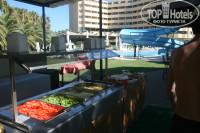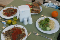 Разнообразное,на любой вкус, много зелени, сыров, супов кажется было мало (они мне как то в глаза не бросались и я их ни разу не ела) и фруктов могло бы быть больше, хотя может уже просто не сезон был. В главном ресторане столы были сервированы, если не было приборов их приносили, алкоголь наливали в стекло. Вечером на улице готовили курицу гриль, пиццу, мясные пирожки, всё очень вкусно. Очень много сладостей. На пляже фастфуд, жареная колбаса, лук, салат, солёные огурцы, делаешь гамбургер и картошка фри, мороженое, алко напитки, газированные воды и кофе.