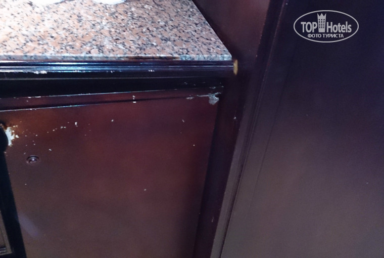 В номере: старая мебель, отваливающиеся дверцы шкафов, неработающий замок на двери в ванной и почти не охлаждающий холодильник. Горячей воды не было, а вечером не стало и холодной.