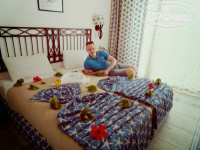 ЗАСЕЛЕНИЕ: Приехали в отель в 9 утра по местному "Доминовскому" времени (-1 от времени МСК),заселение в 14:00....ждать не хотелось,дали на рецепшене 20 баксов,но это особо не помогло,т.к отель был забит!Пришлось ждать,но уже часиков в 12 нам одели браслеты и обещали вселить после 13:00...так и случилось но.........В общем нам дали 2 номера,объеденённых общим коридором(для нас с мужем и отдельный для друга)в 42 корпусе! Разочарование наступило почти сразу,кровати раздельные(сдвинуты) и как выяснилось ночью - разъезжаются)) ,ремонт там требуется очень качественный)))Но решили не заморачиваться....всё таки приехали не в номере валяться)) Муж отправился в душ и не смог его включить с первого раза(жутко злился),потом я попробовала и поняла,что одна бы с ним точно не справилась))))Зато нам достался классный уборщик Ахмед,делал всё возможное и не возможное с этим убогениким номерком!И на чай дать не жалко было за такой то труд)