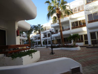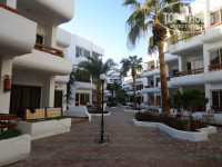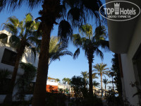 Территория отеля хоть и небольшая, но очень ухоженная и чистая. Мало зелени, конечно, она будто в клумбах, нет газонов совсем, все - брусчатка, но этого вполне хватает. Зеленый островок-граница между жилыми корпусами и пляжем. Пляж, кстати, очень хороший, чистый, достаточно большой (можно сказать, огромный по отношению к размеру отеля). В любое время половина лежаков была свободна. Места там хватит не только на Марлин, но и на соседний отель)))
