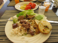Это что касается еды. Насчет номера. Дали далеко и с видом на дорогу, т.е. на сад, но нас это даже обрадовало. Тихо, спокойно, никто мимо не ходит. А самим дойти до ресторана или пляжа было не в облом, т.к. природа красивая, любовались цветочками, птичками, ящерками и фоткались по дороге :) Горячая вода была целый день в номере! Или нам так повезло с номером, или всегда так у них в январе. В марте было с перебоями. Один раз у них была авария и пол дня не было никакой воды. Это был ужас, но с кем не бывает... Починили ровно в 17 часов. В этот день не мыли полы в номере, но поменяли белье и полотенца, как обычно каждый день. Так же в один прекрасный вечер вырубился свет, но, выглянув с балкона, увидели, что света не было не только в нашем отеле, но и в соседних Оазисе и Гардене, т.е. что-то случилось во всей округе. Где-то с часик не было света, потом потихоньку подключили все корпуса. Уборка номера хорошая, а вот сам номер грязноватый, старая мебель. Но это сами туристы пачкают, а после каждого гостя не могут же стирать шторы, менять мебель и т.д.