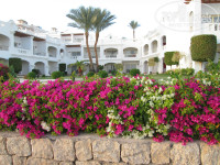 Территория такая же красивая, но чуть меньше было цветов в верхней части отеля, срезали красивые кусты-деревца. А внизу - буйство цветов! Но они иногда их подрезают, чтоб форму придать, поэтому кому как повезет. Мы много нафоткались в цветах :) Бассейн подогревался только около пляжа, там купалось много арабов и детей. Аквапарк был полон народу, мы просто поглядели, не катались с мамой с горок :) Вроде вода там теплая была. Да, комаров много, меня покусали, хоть я и брызгалась, а маму не тронули :)