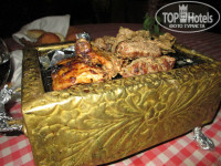 Съездила в этот отель во второй раз, а в это место - третий (была в Гардене в 2003-м, тогда "Интерконтиненталь"). Ездила с мамой 65-ти лет. Кормили и в этот раз как на убой, разнообразие и на завтрак (разного вида творог, яйца, булки, молочные каши, мюсли, молоко горячее и холодное, сосиски, колбаса и сыр, овощи и фруктовый салат и др., голодными не останетесь, выбор на любой вкус), и на обед (разного вида блюда из мяса, риса, картошки, овощи, крылышки перепелов (прикольно), курица, разные супчики (мама ела, ей понравилось), пирожные, пахлава и т.д.), а на ужин еще вкуснее! Все зафиксировала на фотографиях :) Добавила фото в прошлый свой отзыв и сейчас. Изменилось по питанию даже в лучшую сторону! В прошлом году барана не готовили прямо в ресторане, как в этот раз! Может быть сыграло роль присутствие многочисленных арабских семей в это время, не знаю. Но мы остались довольны питанием! Все вкусное, животы не болели. Да, теперь чай можно пить целый день, а в прошлом году - только на завтрак. Пожалуйста любой на выбор, например моя мама пила чай с горячим молоком. Я брала с собой чайничек, но он не понадобился, потому что мы наедались в ресторане так, что уже ничего не лезло в номере :) Два раза я брала свежевыжатый сок (люблю из манго и клубники) к себе в номер и пила перед сном. Стаканы утром относила чистые, в отличие от других туристов, которые бросали грязную посуду прямо около номеров. Сейчас сок стоил 2 доллара, а в марте прошлого года - 5. Продавалась клубника за 3 доллара контейнер. Мы не пробовали. В ресторане было мало фруктов по сравнению с мартом. Но пирожен значительно больше! :) Очень вкусный мягкий хлеб и выпечка, холодное молоко из пачки прямо со сливками, вкуснятина. Потом раскусили и пили его на пляже. Мороженого не видела. Спиртное и напитки - все так же. Я сразу подмазалась к официанту, подарила шоколадки и потом дала 5 долларов и нам всегда был обеспечен столик с цветами, чай, кофе и напитки приносили нам на столик (по нашему вкусу наливали), хорошо к нам относились, как и мы к ним. Будьте более культурными и приветливыми - и будет вам счастье. В ресторан барбекю, по крайней мере в январе, ходить не стоит. Сидеть прохладно, еда холодная, все то же самое есть в ресторане. В рыбный можете сходить для разнообразия, но в ресторане каждый день была зубатка в кляре (всегда брала, очень вкусно, нежно!!!) и салаты из кальмаров.