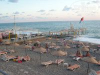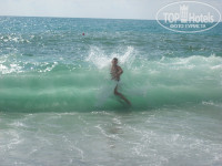 пляж мелкая галька, и большие валуны у входа в море так что лучше прыгать и входить с пирса....входил в шторм с берега перевернуло в волне и повредил колени (еще мягко отделался)!рядом расположен тот же отель только 5*.Шведский стол разнообразен, понравилось что очень большой асортимент фруктов, что не мало важно для Русских туристов!