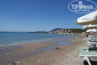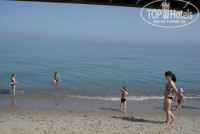 ПЛЯЖ. От центрального ресторана идти пару минут. Есть бар, где продают воду, пиво, кофе и мороженое. Два лежака и зонтик стоят пять евро на целый день. Чек дают всегда, но пару раз у бармена небыло сдачи и денег с нас не брал. Места всегда всем хватало. Пляж песчаный, песок светлый - красота. Вход в море пологий, довольно далеко идти до глубины, в самом начале полметра-метр мелкая галька, а потом чистый мелкий светлый песочек. Море теплое, почти не штормило за весь отдых.