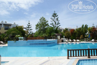 ТЕРРИТОРИЯ ОТЕЛЯ. Территория отеля большая, даже очень, вся в зелени, цветах и пальмах, мы были когда все цвело - красиво. Сам отель находится в поле, рядом гайя палас 5*. Если куда-то сходить - так и некуда. В отеле есть мини маркет, где можно купить все необходимое и то что забыли взять из дома. Цены относительно нормальные. Если пройти от отеля в сторону дороги и остановки автобуса, то есть еще один мини маркет, там цены ниже Но лучше всего покупать сувениры, пляжные принадлежности, крема для и от загара, спиртное в супермаркете Константинос, находится ближайший в Мастихари в 4,5 км от отеля, реально там на порядок все дешевле (особенно сувениры). На территории находятся три обльших бассейна индивидуальной формы. Первый возле ресепшена. Мы в этот бассейн ходили один-два раза, с виду нормальный, возле него есть бар. Второй бассейн посередине отеля, больше подходит для детей, т.к. глубина маленькая 40-70см, очень интересен тем, что есть две горки, одна больше, другая меньше, есть башни а-ля Castle, похожие на средневековые башни зАмка. Народу в нем всегда мало. В общем хороший бассейн. Третий бассейн рядом с нашим номером, в нем проходили анимация, дневные игры, аквааэробика, водное поло (прикольно). Рядом бар, зал с игровыми автоматами. В этом баре можно перекусить сэндвичами, кексами и мороженным. Здесь всегда многолюдно, если поздно позавтракал - то после 9.30 и лежаков уже можно и не найти. Выше писал, что на территории есть загон с косулями, клетки с попугаями и канарейками, после каждого принятия еды, детишки брали с ресторана немного фруктов и хлеба и кормили их с радостью.