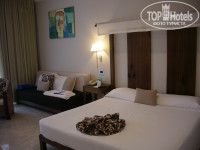 А теперь по порядку. Полет нормально, если не считать переноса места вылета с Домодедова на Шереметьево. И никто не сообщил заранее!!! Хорошо я сам выясняю всегда все подробности. Прилетели, встретили, приехали в отель. Народу приехало много, человек 60 только россиян, были и иноземцы. В порядке очереди всех оформляли. Заселение с 15 часов, попросили подождать, "обраслетили" и мы пошли пообедать, оставив вещи под присмотром. Нашли ресторан, пообедали, пошли осмотрелись и пришло время заселяться. На рецепшене дали конверт с ключами, картами на полотенца и инфой по отелю. Парень довез вещи в номер (не забывайте про спасибо). Номер конечно хорош (спасибо Даниловой Марие). Поселили в сьют в 14 блоке, у дальнего бассейна с баром. В номере: бесплатный мини-бар, кофеварка с запасом кофе, чая, сахара, большая кровать, диван, кресло, джакузи, душевая, ТВ (с одним русским и бесполезным каналом стс. Сколько не обращался не сменили, хотя шла олимпиада и было очень много россиян в отеле). Все отлично: сам номер, все внутри. Но есть большой минус на мой взгляд. Сырость. Может это 1 этаж, а может климат. Да и не нужен нам был номер у бассейна. Там днем собирались большие и шумные компании америкосов и канадцев с кружками-термосами, и было шумно. А мы на отдыхе привыкли поспать после обеда. Но учитывая, что сезон, народу много, стандарт в ваучере, я не долго пыхтел и смирился. Может мы не сильно требовательные туристы, хотя я бы так не сказал. Довольно много ездили и чаще выбирали хорошие отели. А в других добивался своего (разными методами). Скажу совершенно определенно: придраться к чему-то можно в ЛЮБОМ отеле мира.