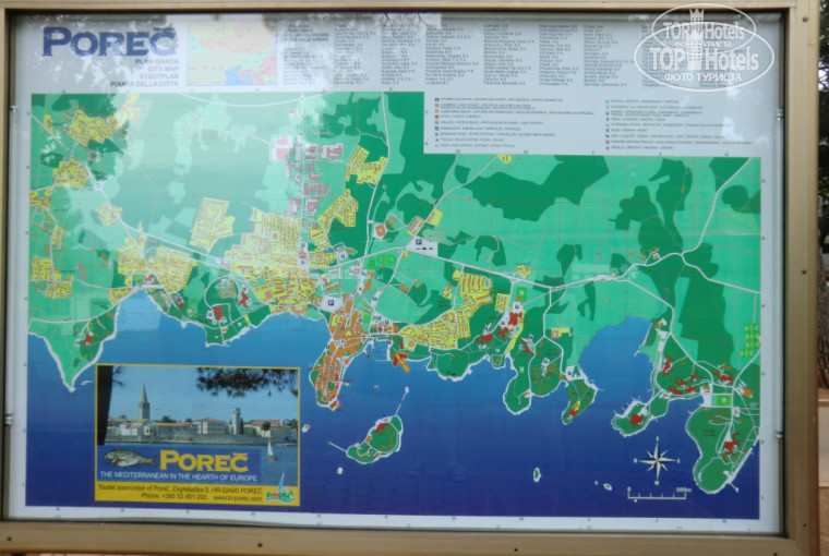 Отель входит в курортную зону Зелена Лагуна. Территория огромная, всё ухожено, есть где гулять и чем себя занять. До ближайшего города Пореча можно дойти пешком минут за 40-50. Также есть возможность добраться до него на водном такси (маршрутка) и на паровозике.
