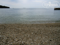 Пляж и вход в море галька. Вода чистая.