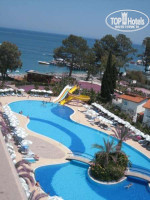 Находится на берегу моря, недалеко до центра Кемера - можно и пешком дойти. Пляж галечный.