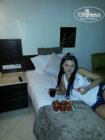 Про быстроту заселения, что волнует наверное всех больше всего. Как только мы приехали и подошли к ресепшену, нам сразу надели браслеты и предложили пройти вниз поужинать. Немного перекусив мы вернулись обратно и вот нас уже ведут в номер, а наши чемоданы едут впереди нас. Разумеется мы ни чего не кому не платили, ни каких шоколадок не давали, но... привели нас в номер на 3 эт. Все показали расказали. Мы решили так сказать отблагодарить молодого человека и дали ему 1$, на что в ответ услышали "это мало, нужно 5"... О_О да... слава богу это было единственное, что нас шокировало за весь отдых. Такой наглости мы еще не видели. Немного поразглагольствав мы все таки отдали ему 5$ и он ушел довольный по уши.