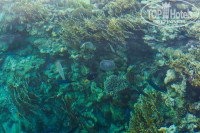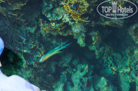 Море, как уже писала - теплое. Скудный риф??? Странно, нас он впечатлил. Видимо люди ожидают увидеть акул или черепах. Мы брали экскурсию на батискафе - такие же рыбки, такой же риф. Даже у понтона увидели таких, каких с батискафа не было видно. Пару раз к берегу скат приплывал - Пятнистый рифовый хвостокол. На своем же рифе видели Индийскую крылатку, Голубопятнистую свистульку и еще какая-то большая рыба прямо под понтоном, но я не могу ее идентифицировать. Еще там рыбы-попугаи, рыба-ангел... Не буду всех перечислять. Мы ходили рыбок смотреть рано утром, сразу после рассвета - часов в 7. А днем рыбки под понтон забивались многие - я их там смотрела, а муж дальше отплывал - под понтоном, говорит, больше рыбы. Медузы были только когда море неспокойное было - их к берегу ближе вымывало, а так их немного обычно.