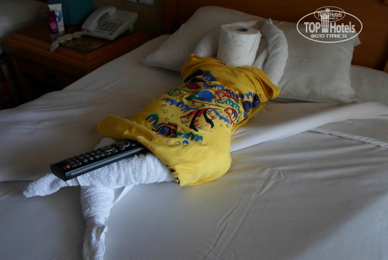 Отдыхала отеле уже 3 раз.По приезду отель разместили очень быстро.Номер был на 6 этаже с видом на море.В отеле все вопросы можно решить с администратором Наталией.Вопросы решаются очень быстро.Поэтому,если у Вас возникают вопросы или проблемы связанные с отелем сразу ищите Наталию:).Анимация Женя, Мидо, Мизо, Бока, Мамбо, Холли, Джамайка, Омар, это живчики. Утром зарядка,танец живота,аквааэробика,танцы латино,вечером тоже веселят народ.Молодежь знаю ездит с ними в город на дискотеки. Персонал ненавязчивый ,знают свое место.Уборка номера каждый день + какие нибудь фигурки из полотенец. Питание- голодным точно никто не будет. В ассортименте всегда рыба,мясо,курица,просто море овощных блюд.Их рыбные пальчики мммммм (рекомендую всем).