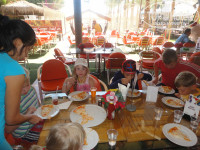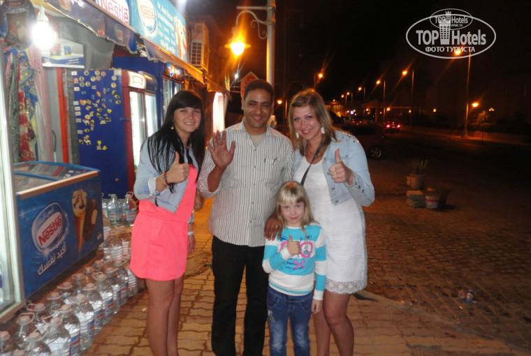 Были с семьей (я,сын с женой,дочь с мужем,внучка. в Хургаде первый раз.Отель сам по себе очень маленький,но номера отличные,все работает.Заселили сразу по приезду,без доплаты, по нашей просьбе номера дали рядышком,чемоданы нам донесли до номера. Питание хорошее,но фруктов было мало -все не спелые,много мясных блюд,рыба,курица,большое разнообразие овощных блюд,рис,макароны,так что голодными вас не оставят.Бассейна в отеле три-детский очень маленький,с подогревом и холодный.Воду в отеле не дают,но это не проблема,ее можно приобрести в магазинчике у приветливого продавца Мина,который находится слева при выходе из отеля,7 литров 1 доллар и помимо этого у него есть всё-недорогие масла,продукты,сувениры-все по отличным ценам. гид отеля Саид хороший человек, от него ездили на экскурсию "Морская прогулка",всем советую эту экскурсию,в неё входит катание на банане в открытом море,восточные танцы на яхте,поездка на райский остров,снорлинг,рыбалка(где мой сын поймал большую красивую рыбу,там нас очень вкусно накормили,на судне был видеооперетор,он снимал всю поездку на камеру,по желанию можно было приобрести диск с видео и фото. в самом отеле анимации нет,но днем аниматоры находятся на пляже,где проводят утреннюю гимнастику,разные танцы,игры,а по вечерам вся программа перемещается в бар "Долфин",принадлежащий этому отелю,где проводятся разные конкурсы...Что касается пляжа, то он просто сказочный- песчаный вход, горки с пантона, лежаков хватает на всех, развлечения для детей-детский клуб,деревянная горка, качели,большой батут, площадка для воллейбола.Большой минус этого отеля , что на пляже три бара из них только один "все включено" и то только напитки. также и в других барах, которые у бассейна и Долфин.Персонал отеля очень приветливый, дружелюбный, правда мало кто понимает русский язык. Вобщем отдых удался, отдохнули, загорели, накупались. Всем советую ехать с хорошим настроением , ведь именно от него зависит весь ваш отдых!!!