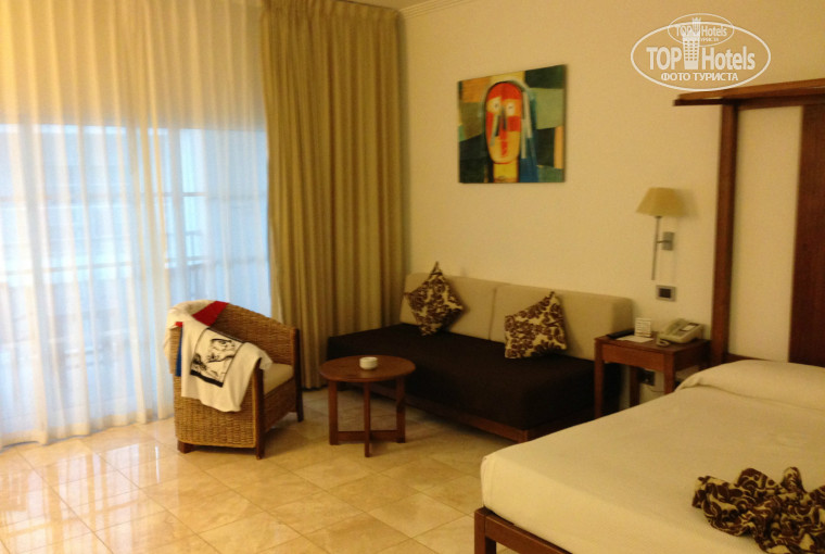 Изначально, при покупке тура мы бронировали номер Делюкс, т.к начитавшись отзывов боялась стандартов. Нам одели жёлтые браслеты, а стандартам одевали синие. В 14.00 мы вернулись в холл к ресепшену и к нам сразу подбежали и предложили заселиться в номер. Номер у нас оказался в 14 ом корпусе, на 3 ем этаже с видом на бассейн, с балконом.Номер 14314. Номер очень понравился сразу - просторный, высокие потолки, кровать кинг сайз, милый новый диванчик с подушечками, кресла, плазма на стене (которую мы ни разу не включили) и тд. В ванной душевая кабина и ещё джакузи. Были мыльные разные принадлежности - зуб паста, щётки, нитки, иголки, молочко для тела, гель для душа, шампунь, классное цитрусовое мыло, салфетки для снятия макияжа и тд. Кто то жаловался на старые матрасы - посмотрели - у нас был абсолютно новый))). Ни какого следа насекомых не было за всё пребывание в отеле. Убирали ежедневно, мы даже не замечали когда именно, бар пополняли регулярно, бельё и полотенца всегда чистые и свежие. Оставляли чаевые по доллару ежедневно горничной.