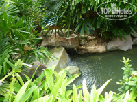 Территория отеля шикарная, очень зеленая, ухоженная с различными прудиками и 3 бассейнами. Пляж по территории надо спускаться вниз по ступенькам минут 5. Пляж собственный песчанный, на берегу есть лодка, которую можно нанять покататься, вместимость лодки 8 человек стоит 2 500 батт за час.