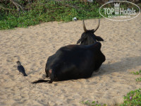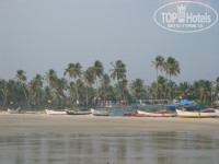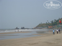 Пляж- выйти из отеля, пройти налево до поворота влево вниз, идти прямо по улице мимо магазинчиков не сворачивая до выхода на пляж (в конце дороги взять чуть левее). В середине дороги мы брали в аренду байк (200-300 рупий, торгуйтесь, если надолго), берите шлем, если поедете на юг- с этим строго. По пляжу раскиданы шеки - это ресторанчики, где можно кушать целый день. Суп 150-200 рупий, второе 200-300, лепешки наан 70, свежевыжатый сок 150. Вода чистая, очень редко утром плавает 1-2 кальмара после ловли, волны большие. По берегу ходят местные, посматривают на девушек, но издалека, спокойно, добрые собаки бегают постоянно. Мы постоянно ездили по штату, поэтому других ресторанов не посоветую.