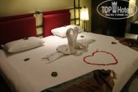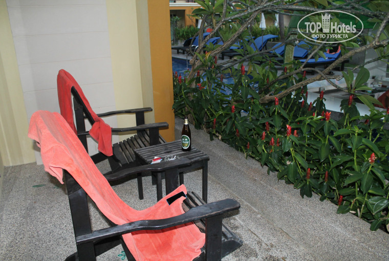 Мы приехали где-то в 13.30 и были встречены на рецепшене улыбками и холодным напитком, честно говоря не очень вкусным, но зато холодным!! Заселялось много людей, поэтому пришлось подождать, ну а потом началось. Мы брали номер Делюкс с видом на бассейн, нам показали стандарт, да еще и с какими-то кустами перед окном, так что ничего видно не было. По английски ни я, ни мой муж не говорим, только школьная программа, потому честно говоря я перепугалась и незнала как объяснить тайцу что это не то. Но он за собой косяк знал, поэтому когда мы вышли из номера и отказались туда заходить он проводил нас обратно на ресепшн. Там нам стали предлагать выехать в другой отель на один день, что согласитесь, вообще не круто. Решили позвонить гиду, но на симке денег небыло, поэтому попросили телефон у них. Когда они услышали про ТЕЛЕФОН, сразу нашелся самый лучший номер с выходом в бассейн, а на завтра обещали переселить. В общем согласились, просто чемодан не разбирали, да и время было уже много. Пообщались с другими туристами, приехавшими с нами, оказалось не только нам недосталось делюксов, а еще двоим компаниям.