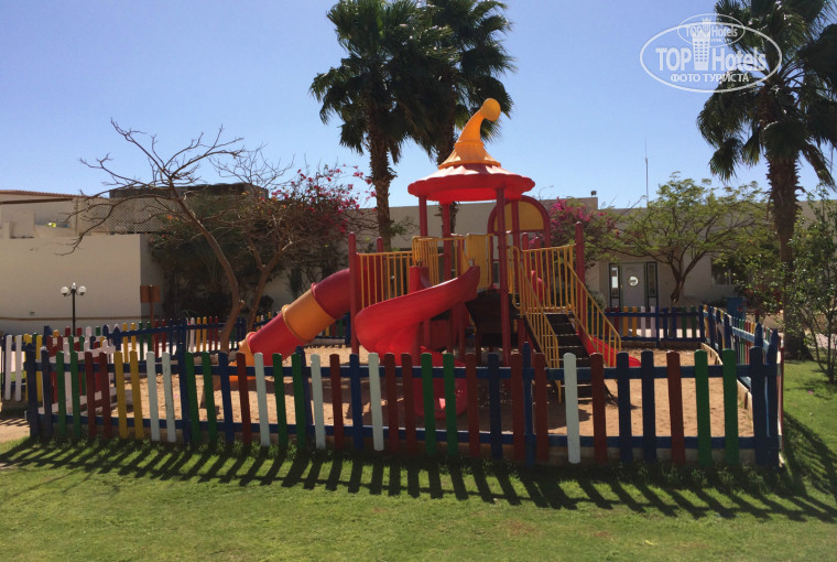 Ну как вы понимаете за 16 дней почти выучили арабский, потренировались с английским)) это я к тому что стали своими с русскоязычным населением отеля и почти свои в доску и с арабами и с американцами и немцами и т.д и т.п, помогал наш ребенок. Ему было не важно какой ты национальности, не то что администрации отеля, которая тупа разделила нас цветными (синий-анг., желтый- араб. и оранжевый - рус, беларус и украина)браслетами от англоязычного и арабского люда. Из развлечения с утра для детей была только детская площадка с горкой и песочницей (см. фото). Детский клуб находится в двух шагах от этой площадки, только не сразу заметишь вход в него (может конечно есть другой вход, но мы в клуб ни разу не попали за 16 дней так точно и не знаем) после 4-5 попытки туда прорваться азарт остыл и мы просто про него забыли. Детских аниматоров в зеленых футболках(для тех кто туда поедет чтоб знали как их искать)) видели всего за 16 дней 2 раза и это было так, "вон вон, смотри сына, это верблюд" - говорил я сынишке когда мы ехали на автобусе на пляж, вот так и про аниматоров было! Так что мы до 9ч30м на это вот площадке, потом на пляж (про пляжи вообще отдельная история так же как про номера отеля (поменяли 4шт) так же как ипро столовую (ага столовую) так же как и бассейнах-типа болота (фуу) так же как и про уборку в номерах и на территории да и вообще есть много что написать и фото по всем случаям-казусам пребывания в этом отеле!!! если отзыв не удалят буду в свободное время редактировать пока все вам не расскажу!!!