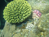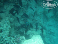 Пляж: отельный пляж не очень, с малыми детьми на нем делать нечего(как в прочем и вообще в этом отеле), купаться можно только с пантона, а там сразу обрыв на 10-15м. Мы нашли выход, пробирались на пляж ФаршА, он находится в бухте и там почти нет волн(хотя на отельном были они очень часто и даже пару раз запрещали входить в море). На Фарше конечно стоит охрана, мы просто говорили что из отеля Карма, там кстати тоже синие браслеты(но мы свои все равно прикрывали) и нас пропускали. Этот же пляж еще и у отелей Фарана и Риф оазис(конечно эти отели дороже:( ). Самое главное на этом пляже можно купаться и до обрыва и там тоже есть много рыб, плюс обрыв не резкий и всего на м 6-8, много разных бухточек в корале и гротов, очень красиво...