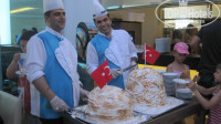 Сервис в отеле хороший. Уборка каждый день. В главном ресторане ребята молодцы. Всегда с иголочки одеты и убирают все быстро. Питание отличное, всего хватало: рыба, мясо, курица, каши, супы, лапша, выпечка, фрукты, овощи. И для 3-х летнего ребенка было, что подобрать. Мороженое там вкусное. Жаль только, что давали его только на ужин. Однажды сделали огромный торт-мороженое: просто божественная вещь. Каждую среду на ужин жарили целого барашка и делали небольшое шоу для посетителей главного ресторана (с музыкальным сопровождением). Мы за 2 недели посетили 2 разных ресторана: османский и рыбный. Оба понравились. Спиртное там качественное подают.
