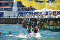Отдыхали в отеле семьей (с ребенком 3-х лет). Отель понравился: чисто, ухоженно, спокойно. Отдыхали 2 недели. За это время было, чем себя занять. Ходили в аквапарк, ездили на экскурсии, летали на парашюте, вообщем, отдыхали по полной программе. Территория самого отеля небольшая, зато территория аквапарка огромная. Наше чадо пропадало целый день (вместе с бабушкой) в детском бассейне. Мы с мужем ходили на большие горки. Самая захватывающая горка - закрытая, внутри черная. Вот это впечатления! Никогда не забудешь! Катались на искусственном рафтинге - так себе. А вот "Ватрушка" хороша, дух захватывает. С тарзанки прыгнуть не рискнули, страшновато.