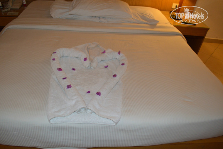 Были за границей первый раз, сравнивать пока не с чем! Отдыхали с 7.03.2014 - 14.03.2014, летали с Pegas. Заселили относительно быстро, сначала дали трехместный номер на двоих, очень темный, одно маленькое окошко. На ресэпшене предложили за 10 долларов заселить в хороший номер, мы отказались сначала, но когда увидели этот номер, согласились. Дали нам номер с одной большой кроватью, с видом на бассейн, с сейфом.