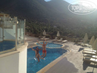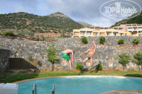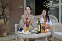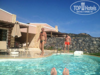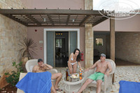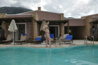 Отдыхали в отеле двумя парами, возраст от 24 до 32 лет. У нашей подруги был День Рождения в день прилета, заселение было рано утром, где-то около 9-10 утра, и представьте наше удивление, когда мы зашли в нашу виллу!!! На столе в гостиной стоял большой наивкуснейший торт, красивейших 2 букета цветов, ведро с шампанским, обложенным колотым льдом и в конверте поздравительная открытка! Тронуло до слез не только именинницу, но и всю нашу компанию! Что касается номеров, то мы от всех слышали отличные отзывы. Сами же проживали в вилле на четверых, в которой был персональный бассейн, 2 санузла, гостиная с большой плазмой, двумя диванами и камином, 2 шикарные спальни с большими кроватями с балдахинами! В номерах много чистых новых полотенец, фен, банный халат, комнатные тапочки. Каждый день уборка в номере, чистота и порядок! Из нашей виллы было 3 полноценных выхода: 1 из них выводил во двор к бассейну из гостиной, 2ой тоже выводил во двор к бассейну, но уже из одной из спален, а 3ий приводил к террасе с обратной стороны виллы из второй спальни. Так же во дворе стояли 5 шезлонгов и набор плетенной мебели (2 кресла и 1 софа), стеклянный журнальный столик, что мы находили очень удобным! Каждый вечер, возвращаясь домой с пляжа, мы сидели под навесом, примыкающим к нашей вилле, разложив на этом столике выпивку, закуску, телефоны, игральные карты и многое другое! Во дворе возле бассейна был выложенный из камня мангал, но мы им так ни разу и не воспользовались. Единственный минус в нашем путешествии оказался неудачный подбор времени нашего отпуска... Т.к. мы там были с 8 по 16 мая (а это только начало сезона), то ни море, ни бассейны не прогревались до комфортной температуры. Но мы были без детей, компания молодая и веселая, поэтому, купались не задумываясь! Что касается инфраструктуры, то на территории отеля находится огромный спа-салон, кабинет маникюра-педикюра, парикмахерская. Нас очень привлек корт для большого тенниса, наши мальчики каждый вечер играли там, причем, абсолютно бесплатно. Еще мы все вместе играли в баскетбол, волейбол и т.д. Питание было просто супер!!! Каждый день разнообразные свежевыжатые соки, разнообразные блюда, вкусные десерты, много фруктов! Обслуживание тоже было на высшем уровне. Хотелось бы отметить в частности двух людей, с которыми у нас наладились отличные взаимоотношения: один из них - бармен из открытого бара по имени Митри. Очень веселый, общительный, улыбчивый, симпатичный молодой человек! Второй наш греческий друг - водитель (к сожалению не запомнила его имя), который каждый день отвозил нас к морю и на автобусные остановки. Сразу хочу сказать, что русскоговорящего персонала в отеле нет, нужна хотя бы маленькая база знания английского. В общем, отель ооооочень понравился, всем советую!!! ))))