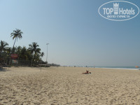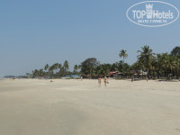 Самый огромный плюс это месторасположение. Очень близко от моря и недалеко от центра поселка Колвы. Пляж широкий с белым, хрустящим песком. Шеки на выбор. Индусы кучкуются у центрального входа, в выходные приезжают автобусы с Маргао, тогда их просто кишит. Но метров 300 в сторону и уже спокойно. Вообще, юг Гоа место довольно чистое: коров нет, только мирные собачки.