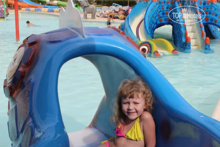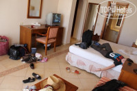 Номер нам достался далеко от моря (это дало возможность спокойно сидеть на террасе в любое время суток с бокалом напитка из duty free, и не являться при этом выставочным экспонатом для снующих обитателей отеля), в районе аквапарка (дети с восторгом посещали аквапарк), только окнами "во двор" (это дало звукоизоляцию от самого аквапарка, мечети расположенной где то неподалеку и шума ночных дискотек из соседнего отеля), на первом этаже (дверь на террасу использовалась как основная входная-выходная дверь). Внутреннее убранство номера простовато, приглядевшись можно заметить зашарканность интерьера, в маленьком телевизоре есть российские каналы, в маленький холодильник поместится бутылка виски и бутылка лимонада, в маленький сейф документы и деньги. Напор воды в ванной оставляет желать лучшего (это и не удивительно, ведь для водопровода используется сложнодобываемая опресненная морская вода, а номер расположен в верхней части территории). Рум сервис, мягко говоря, ненавязчивый. Уборка не каждый день (не каждые два дня, не каждые три дня), но если аккуратно сделать замечание уборщикам, то "завтра" они зайдут и к вам. Мы оставляли на столе по 2-3 доллара для улучшения качества обслуживания и это принесло нам на кровать лебедя из чистых полотенец.