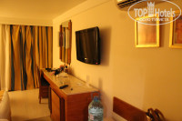 Мы жили в номере 410. Уютный небольшой номер, в нем нет ничего лишнего: 2 кровати, небольшая плазма на стене, шкаф, кондиционер (работал исправно), телефон, журнальный столик, 2 кресла, столик с зеркалом. В ванной комнате- душ, полотенца меняли регулярно, но с каждым днем их становилось все меньше, поэтому мы выловили уборщика и быстро решили эту проблему. Единственный недостаток-в ванной мало места, а в целом за весь отпуск ничего не ломалось, вся сантехника гуд и в целом номер чистый светлый уютный. Еще у нас была небольшая неприятность- чтобы закрыть входную дверь надо было со всей силы ею хлопнуть, мы думали, что так во всех номерах, оказалось нет, потом нам ее починили, ура. Выдали два электронных ключа, которые были также включателями электричества и света в номере. У нас был "французский балкон", то есть перегородка, на которой можно сушить вещи, полноценные балконы были в номерах на 5 этаже. Вид из окна очень классный! Панорама синего моря и ярких красок! Также из нашего номера можно было смотреть вечернюю анимацию:) Питание&Бар.