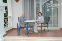 Мы бронировали два номера, заранее писала в отель с просьбой поселить рядом, но разместили в разных крыльях главного здания. Хорошо, что на 1 этаже. После встречи с гидом на следующее утро, переселили рядом, через 2 номера. Обстановка понравилась: хорошая широченная кровать, светонепроницаемые шторы, деревянная мебель, телефон, мини-бар, сейф, кондиционер, маленький телевизор с несколькими русскими каналами. В санузле не душевая кабина, а ванна, есть биде, фен, телефон. Все работало исправно. Горячая вода была всегда, причем очень горячая - мы грели в ней детское питание. По этой причине чайник в номер просить не стали. Очень понравился балкон-веранда. Можно было посидеть за столиком на свежем воздухе или выйти на травку. Да и покидать номер в другую сторону иногда было удобно. Один из минусов - это комары в номере и на всей территории отеля. В номерах их травят аэрозолями, территорию окуривают регулярно, но они все равно есть. Так что запаситесь средствами для номера и для тела, желательно дома.