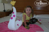 Уборка ежедневно, чаевые давали. Фигурки из полотенец крутили. Сначало добровольно, потом по просьбе (малышке очень нравилось). Полотенца и белье меняли, мыльные средства добавляли по мере необходимости.