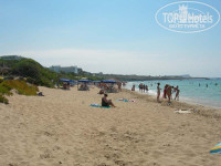 Пляж: муниципальный, хороший желтый песок. Лежак (зонтик) стоит 2,1 евро. Если брать два лежака с зонтом – 6,3 евро. Можно обходиться и без них: купить соломенную подстилку и зонтик, этого добра продают почти на каждом углу, даже рядом с пляжем. На пляже место близкое к пирсу не совсем удобное: мелковато, да и камни в воде встречаются. Мы уходили в центр большого пляжа, напротив отеля Grecian Bау 5*. Там и места много и купаться удобно.