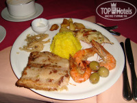 Особо расскажу про детский ужин. Он не афишируется, но он есть! В 18.00 возле главного ресторана накрывают столы для маленьких гостей отеля. Специально для этого приносят детские столы с лавочками. Блюда простые, без специй и соусов. На гарнир - картофельное пюре, макароны, рис. К ним могут быть мясные или рыбные котлетки, фрикадельки, рагу. Фрукты, сладкий десерт. Дите сидит за столом, в окружении таких же самостоятельных едоков. Набегавшись за день на пляже, в поисках клада или еще каких-нибудь секретиков, аппетит у всех отменный! Поверьте, детский ужин - это самая замечательная идея отеля! Ребенок уже сыт и счастлив, а у родителей еще есть время до ужина.
