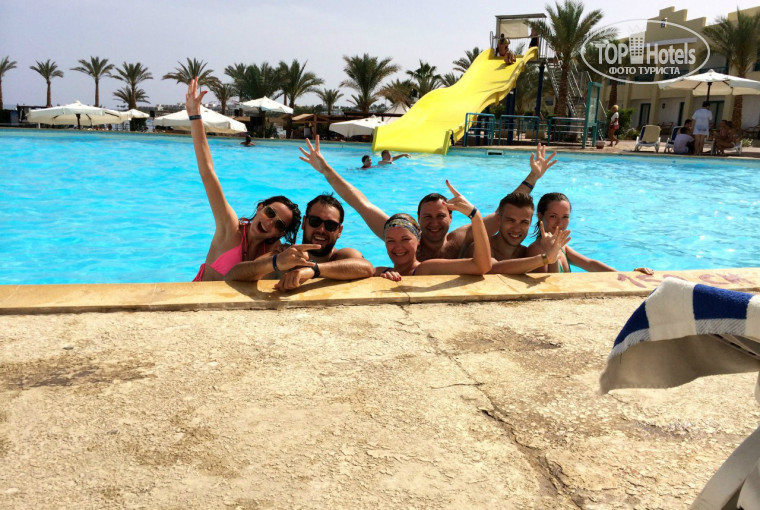 Ну что могу сказать, территория отеля очень большая, 2 своих пляжа, один тусовочный с искусственным берегом, то есть все коралы вырублены и засыпан песочек, то есть можно было плескаться на берегу не боясь, что порежешь ноги ну всё в этом духе. Второй пляж релакс, там было всё тихо и спокойно, на обоих пляжах были понтоны. Основной бассейн и территория вокруг него была прям пропитана сексом, отличным настроением, улыбками, алкоголем и дружелюбностью. Очень много молодёжи, парни и девушки аниматоры не давали покоя зазывая играть то в пляжный волйбол, то на аквааэробику, вообщем развлечений было много. Порадовали горки, гоняли на них без устали. Сама территория отеля очень зелёная, очень много пальм, красивых цветов, всевохможных декоративных штук, миниатюрными пирамидами, зоопарк. Вообщем погуляв, поплавав в море, насладившись обстановкой мы забыли про все невзгоды нашего номера и успокоились.
