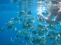 Заселение прошло быстро, поселили без всяких доплат на 2 этаж, как мы и хотели. Много пишут про то, что огромные очереди. Ребят, неужели вы наш народ не знаете... Оголодавшие русские занимают очередь ещё до начала обеда и стоят ждут. Идите чуть позже, если вы подождете 30-40 минут еда от вас не убежит, всегда всё вовремя докладывают, недостатка не бывает. Единственный минус по еде - это малое количество фруктов. Кроме дынь, яблок и апельсинов ничего не видели ни разу за 2 недели. Лежаки свободные есть, бежать в 6 утра занимать ничего не нужно. По сравнению с соседними отелями пляж у Club Azur отличный. Не нужно идти 1 км вперед, чтобы окунуться. Огромный плюс отеля в том, что виндсерфинг, катамараны, велосипеды ежедневно даются бесплатно. Ребята-аниматоры, умнички. Стараются, вечерняя шоу-программа понятна как русским, так и иностранцам. Днем тоже не дают скучать. Бассейн занимает значительную часть территории. Выглядит превосходно. Вода +28 градусов. Вылезать от туда не хочется. Везде можно найти минусы, смотря как себя настроить... Работает на пляже бармен, никогда не улыбается, может не налить вам то, что вы хотите. Но все проблемы решаются моментально, стоит только сказать, что вы пойдете жаловаться. Единственный человек, к которому не очень хотелось подходить. Остальные бармены, официанты, весь обслуживающий персонал очень внимательные и доброжелательные. Наш отдых удался))) Остались только приятные воспоминания)