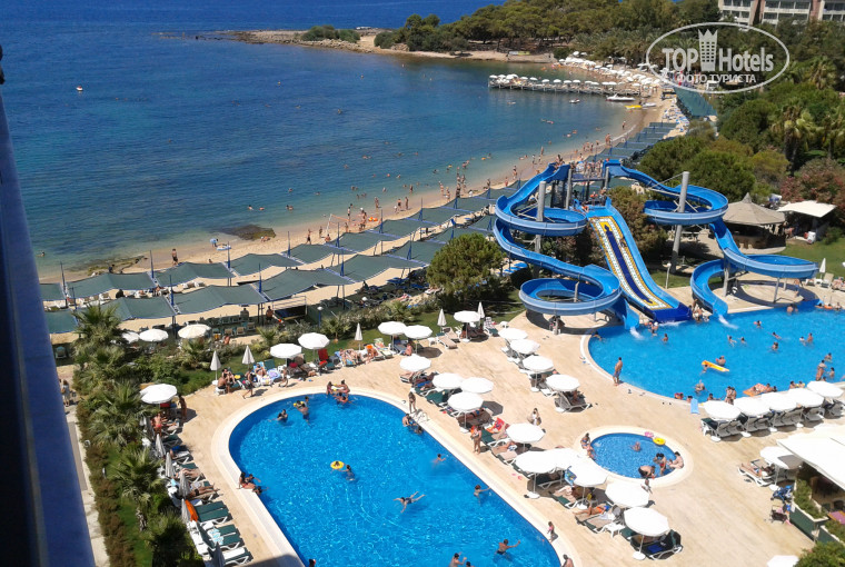 В прошлом сезоне отдыхали в этом отеле с 26.07.2013 по 08.08.2013 . По прибытии нам предложили сходить пообедать, что мы с удовольствием и сделали, так как длительный перелет и трансфер до отеля способствуют развитию чувства голода. По возвращению с обеда, как нам и было обещано, мы заселились в отличный номер на шестом этаже 3620 с прекрасным видом на бассейны и море. Переодевшись, спустились в СПА центр за пляжными полотенцами и отправились знакомиться с территорией отеля.