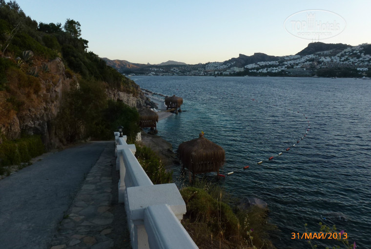 Итак, отель Green Beach 5*- оочень бюджетная турецкая пятерочка. Время посещения 31.05-11.06.2013. Бодрум,аэропорт Милас. Туроператор ТЕЗТУР, перелет Ямалом. Все перемещения прошли без заминок и задержек, вылет по расписанию. Из аэропорта автобус повез нас в отель, причем порадовало то,что все ехали в один отель,поэтому без остановок и быстро. При размещении зато ощутили,что нас приехало почти 50 человек))) но ждали недолго-расселяли сразу. Отель состоит из главного здания и так называемых club room-маленьких коттеджей в 2-3 этажа, разбросанных по огромной территории. Поэтому без провожатого мы не решились идти. Ну вот карточки получили,браслетики одели и нас повели. Зашли в номер-нет балкона!!! Да еще и холодильник не работал. В общем номер нас не устроил. Нужно сказать, что мы покупали размещение ROH,т.е. на усмотрение администрации (съэкономив почти 10 т.р. чем если бы просто стандарт). И мы еще в москве решили доплатить на месте. Начались переговоры мужа с ресепшн. Договорились,что завтра вопрос решится. Пришел мастер-починил минибар). Пошли на ужин. Время было позднее, и в столовой было уже мало еды,народа и освещения))) я подумала боже мой,куда мы приехали....отель выбирала я,ответственность за отдых на мне...короче говоря тоскливо...немного погуляли, осмотрели территорию и решив, что утро вечера мудренее-пошли спать)))