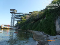 а спуск на пляж это очень удобно)отель ведь сам находится на горе,а море у подножья. возле главного бассейна,за баром, где вся "тусовка" идет дорожка к лифту. протяженность дорожки ну метров 5 наверно. и лифт опускает вниз на платформу к морю. наверху вокруг кабины смотровая площадка-очень красивая панорама с нее. если не хочется на лифте - можно пешком. там есть спуск)