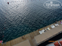 Море просто сказочное...красивущее...но нет пляжа как такового,есть небольшой заход в море с белыми камешками,а так в основном платформа для загорающих. Мне кажется некоторые там и ночевали)) потому что лежаки и матрасы на любой вкус. Спуск на пляж есть пеший с горки,а есть на панорамном лифте-очень красиво