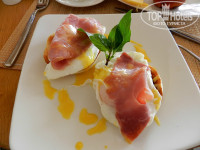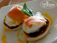 Каждый гость может выбрать из меню завтраков одно блюдо на выбор. Очень вкусные "Яйца Бенедикт" и "Яйца по-королевски". Обалденные вафельки с шоколадом и бананами, очень питательны завтраки на сковородке со скворчащей говядиной и овощами) Варят очень хороший кофе, не экономят. Приносят фреши и смуззи по заказу. Всё входит в стоимость завтрака.
