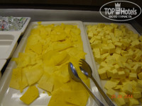 Много фруктов-арбузы,дыни,клубника,яблоки,апельсины,персики и т.д. На фруктах очень милый мальчик, за улыбку даст тарелку нерезаных фруктов,а за пару чаевых снабдит дынями,персиками,клубникой без очереди