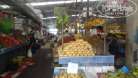 располагается если идти вниз до 2го перекрестра дам будет фруктовый рынок и на этом перекрестке повернуть в право то черех мтров 200 будет стационарный рынок где во 2й половине дня и до 10-11 вечера можно поесть море продукты, Курицу, мясо рис... Цены в несколько раз дешевле чем в ресторане разумеется. Фрукты дешевле на фруктовом рынке.