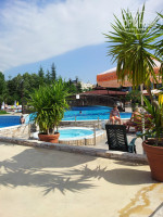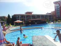 Питание. Отель работает по системе "Все включено", большой ресторан со шведским столом, и огромной террасой, где мы все время завтракали, обедали и ужинали, так же Отель предлагает 3 ресторана а ля карте, Рыбный, Куриный, и Итальянский, они все бесплатны, правда о них как то персонал умалчивает. Чтобы попасть в эти дополнительные рестораны, система следующая: вы должны вечером подойти к выбранному вами ресторану, (они все находятся чуть поодаль от главного ресторана), и записаться на ужин. Запись происходит примерно за сутки, и меню вам дают сразу, вы выбираете что вы будете заказывать, и когда уже приходите непосредственно на ужин, называете свое имя, номер - вам накрывают стол. Обязательно сходите во все три. Наши фавориты, Рыбный и Куриный рестораны. В рыбном мы ели вкуснейшую форель, мидии и кольца кальмаров, пробовали экзотическую для нас акулу. Куриный порадовал нежнейшим крем супом (ребенок был в восторге) и блюдами из птицы. В целом питание достойное - шведский стол предлагает несколько видов мяса, гарниров, вкуснейшие овощи, нарезки (сыры и колбасы), сладкий стол для меня был шикарен: все сладости на восточный манер, вкуснейшая пахлава, много пирожных. Завтраки радовали очень вкусным заварным кофе, которое наливали в баре, не во всех гостиницах есть такой, меню на завтраки довольно стандартно: каша, омлет, яичница, обилие булочек, джемов, шоколад, выпечка свежайшая и очень вкусная. Обязательно попробуйте их фирменные пирожки "Банечки" с соленой брынзой, подавались на каждый завтрак. Из фруктов был очень сладкий арбуз, абрикосы (правда зеленоватые), черешня, яблоки, киви. Наш ребенок налегал в основном на арбуз. Алкоголь местного производства, очень вкусное вино, не зря Болгария славиться своими винами, пиво, из коктейлей: Куба Либре (ром с колой) Текила Санрайз, Секс на пляже (правда в довольно забавном исполнении с фантой). Для детей приятный бонус - мороженое у бассеина, и вкусные коктейли из какао и сбитых сливок.
