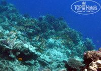 Море около отеля очень специфично, зайти можно только в двух местах: с мыса на границе с Азуром и с пирса. Вход с мыса пологий и каменистый, лучше идти в специальной обуви, можно перейти по отмели (особенно в отлив) на очаровательный остров с песчаным пляжем, а можно и переплыть небольшую впадинку, но там бывает довольно сильное течение и несет в бухту Азура, тут главное не паниковать и быть внимательным – далеко не унесет. С острова можно выйти на риф, но во время штиля, когда есть прибойная волна пройти по камням сложно, можно сильно побиться, зато у острова, не доходя до линии прибоя, есть очень тихие бухты с песчаным дном и без народа. Вход с пирса оборудован хорошо: две приличные лестницы с перилами и дежурит спасатель. С пирса сразу попадаешь на край рифа. Много рыб и красивые кораллы, но лучше плыть в другую сторону от Азура (направо, если стоять спиной к берегу). Надо отметить два недостатка пирса: он очень длинный и в жару будет утомлять (зато на рассвете и закате с него прекрасный вид), и во время сильного волнения его закрывают – волной может сильно ударить о лестницу или пирс.