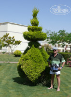 Территория поразила. По фотографиям казалось, что территория пустовата, но на деле оказались очень красивые травяные лужайки (по которым приятно пройтись босиком) с отдельно стоящими сортовыми растениями. Таких олеандров и гибискусов мы еще в Египте не видели. Многие деревья забавно подстрижены.