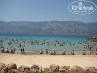 Пляж - возле отеля обычный, шумный, много народу. Но изюминкой отеля есть то, что у него есть собственный пляж в 5 км от города, возле поселка Ичмелер. Вот это и есть сказка!!!! Водичка прозрачная, шезлонги и зонтики новые, матрасы чистые. На пляже есть бар, где за доп. плату можно выпить вкусные фреши, покушать мороженого и даже комплексно пообедать. Природа - просто нереальная!!! Хвоя, кипарисы, мандариновые деревья, горный воздух...!!