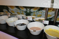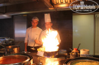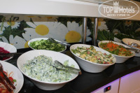 Относительно еды: меню очень разнообразное.Всегда есть курица в разном виде,рыба,мясо...делают тефтели,печенку,гуляш,картошка фри,пюре,макароны,рис....можно долго перечислять.В том числе есть и диетическая еда. Овощи,фрукты,...соки пакетированые и можно самим выжать апельсиновый.. Мороженое дают на ужин .
